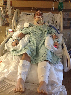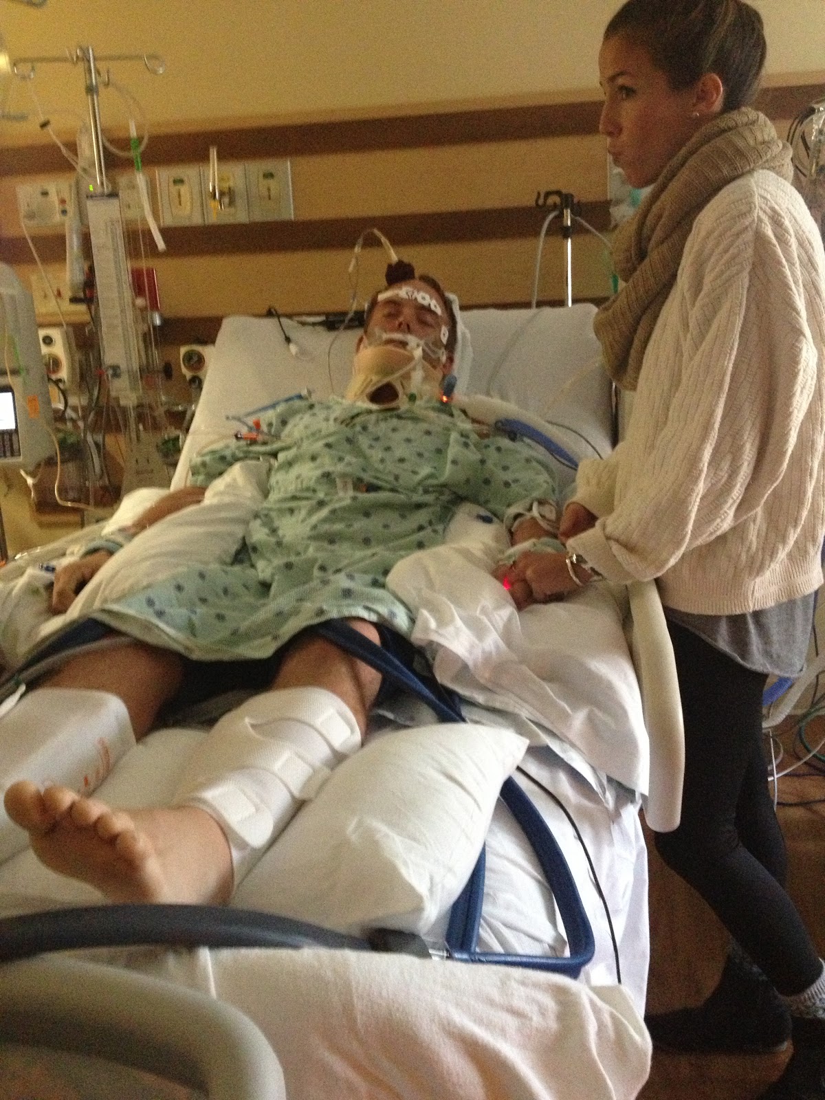 Long story short: My little brother Jake has taken a nasty spill down a set of unforgiving concrete steps. This happened 2 days ago and he’s currently in an induced coma. So far they have drained 80 mL of fluid from his brain. He’s on a ventilator and his body temperature is being controlled by an Arctic Sun machine. This machine essentially keeps his body at an even temperature because his body is unable to regulate it on it’s own. They’re targeting 36 degrees Celsius which he’s slowly progressing toward. They’re feeding him through an OG tube which sends liquid food straight to his stomach. He’s also on a morphine drip.